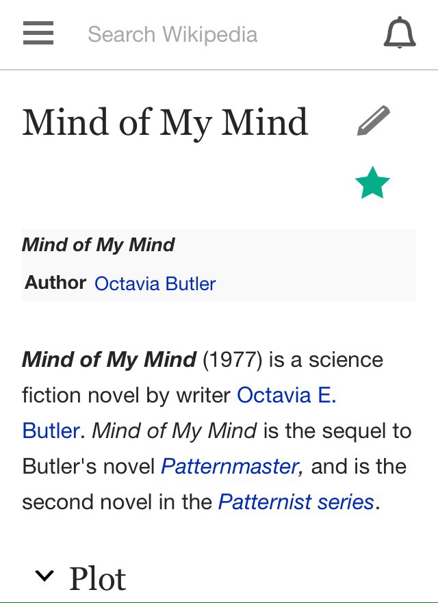 I was also able to participate in creating a Wikipedia page for Mind of My Mind that didn’t exist before the conference. My little nerd heart almost couldn’t take it. I have a feeling I’m going to go back and add more to it later.